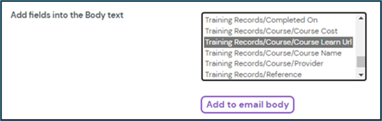- Create or edit an email template for training notifications.