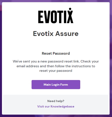 - Check the registered email inbox for an email from Evotix Assure containing the password reset link.