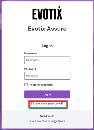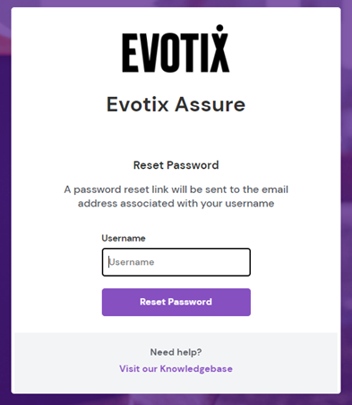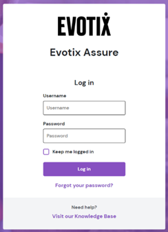 - If the unique Assure URL or username is unknown, contact the Evotix representative or the organization's system administrator for assistance.