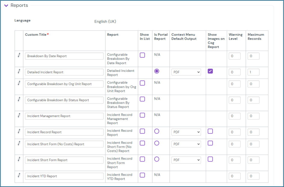 Example: Set the default output for the "Incident Summary Report" to PDF and rename it to "Monthly Incident Report."