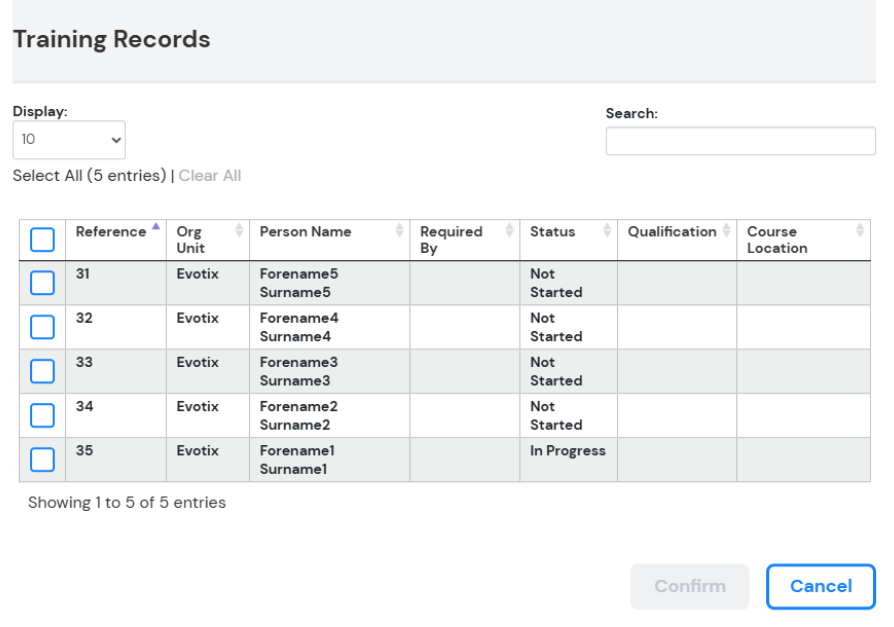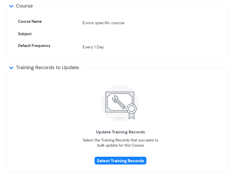 To add the Training records you wish to update click “Select Training Records”