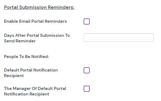 The last option within Reminders should be “Portal Submission Reminders”