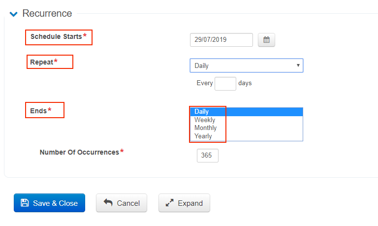To create a new Schedule, click on the New Record icon