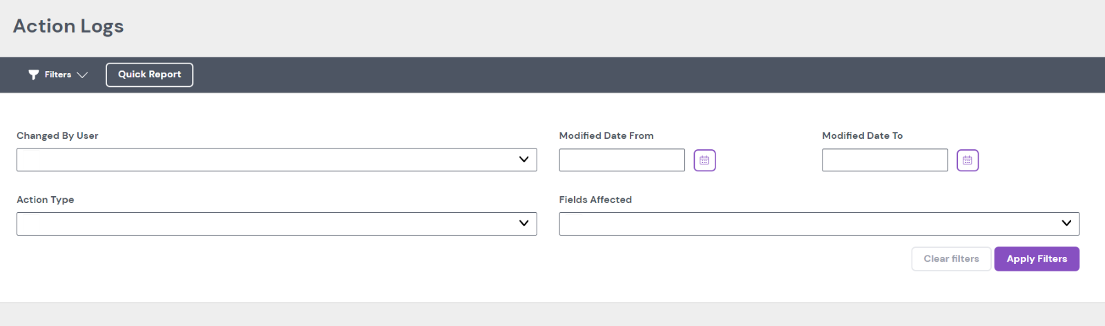 You can also apply filters on this page to filter by fields affected, changed by user, action type or changes made between dates.