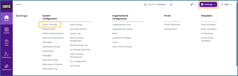 - Log in to Assure with a user account that has the Manage System Settings Supervisor Privilege.