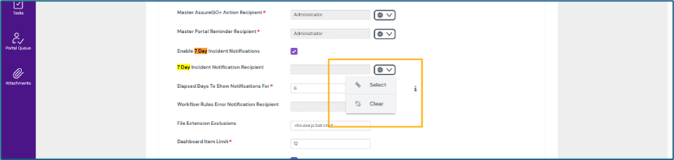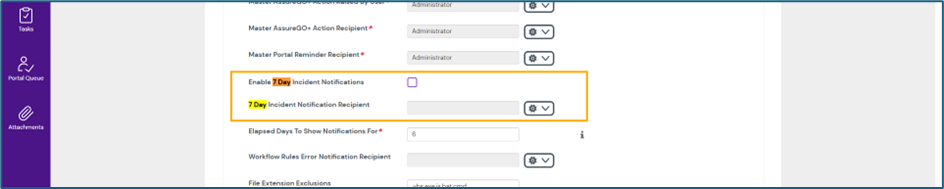 Warning: If the assigned 7 Day Incident Notification Recipient user is deleted from Assure without first being removed from this setting, the deletion will be blocked. You must clear or reassign the recipient before deleting the user account.