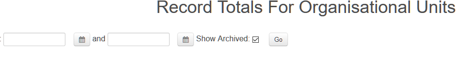 Within the ‘Record Totals For Organisational Units’ Report, accessible via the Organisational Unit section, there is the option to filter the results by the Date Created.