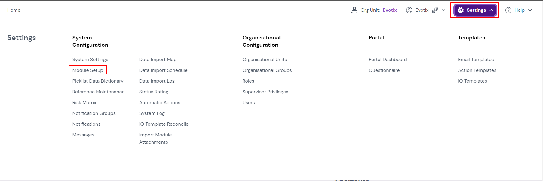 Navigate to the required module