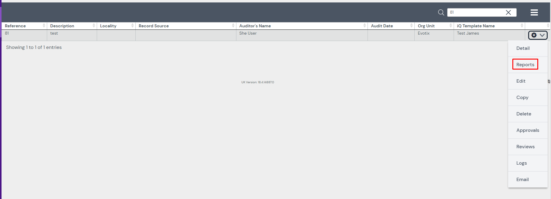 It is possible to run a report on an individual record in Assure, when using the Quick Search function.