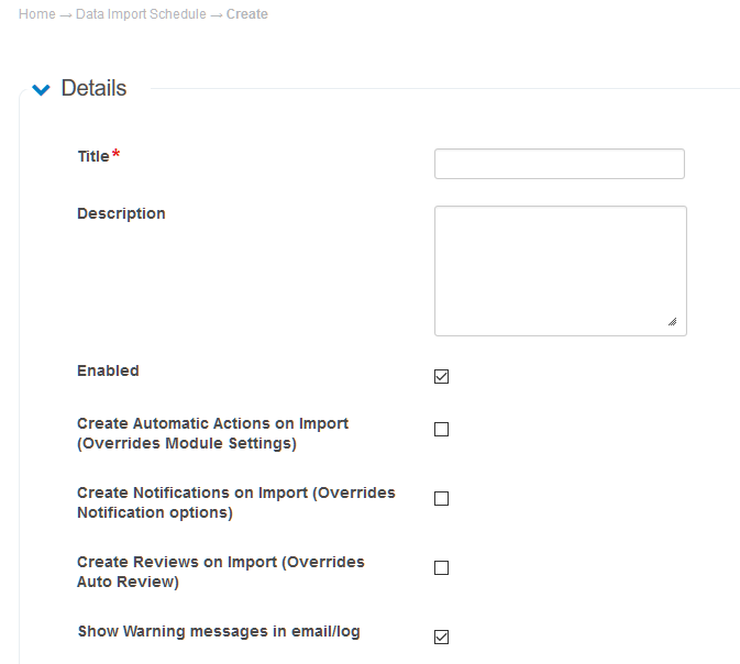 Give your Data Import Schedule a title and description so you can easily recognise it.