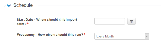 The Start date should be one day in the future as the data will be imported during an overnight scheduling process.