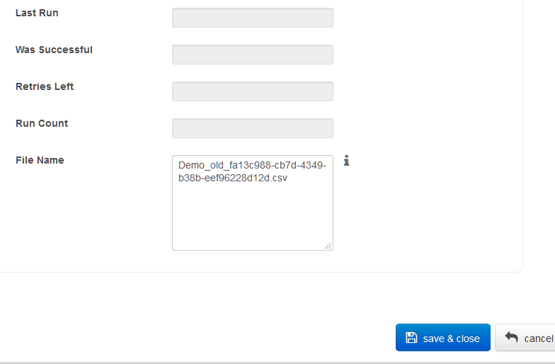 Once you have created your data import map and linked it to the schedule, you will be given a csv filename from Assure. You must change the name of your csv file containing the data that you wish to be imported and rename it to match the filename you were given within.