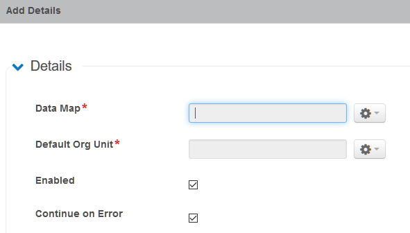 Match by ID Check Box – This field allows certain values to be matched by their ID, instead of their display text. This is primarily used for org units.