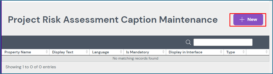 3.1. On the Caption Maintenance screen, click the New button (green button, top right).
