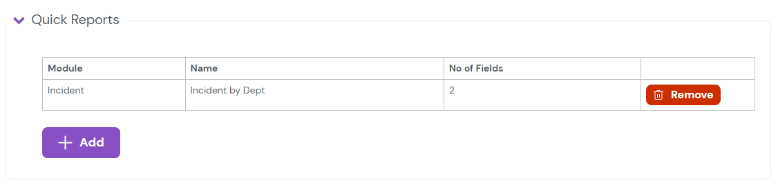 Select the Add button which will allow you to select your Quick Reports