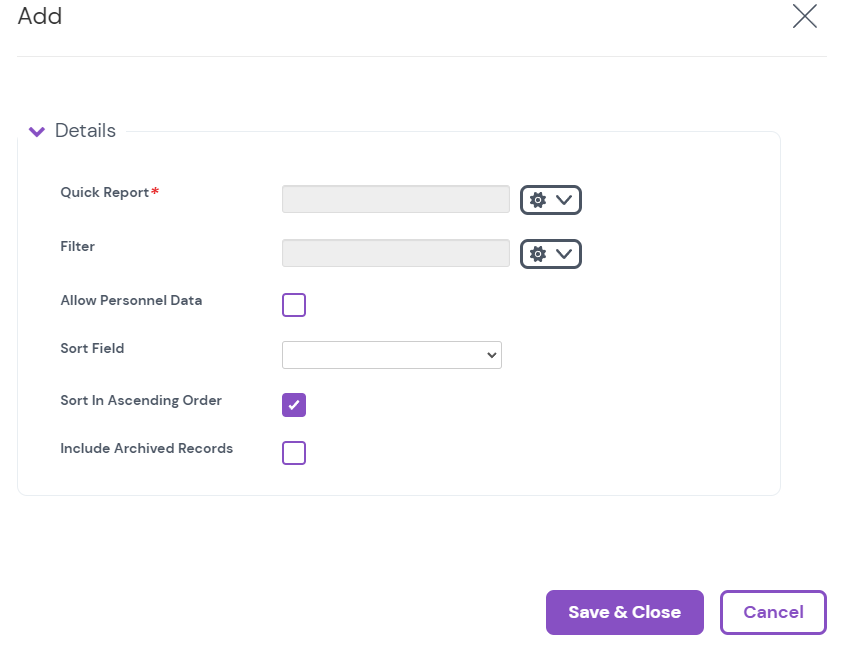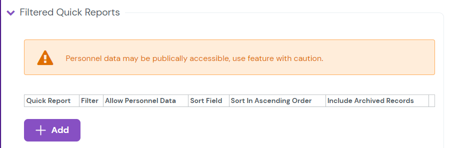 It is important to note if the ‘Allow Personnel Data’ is ticked any user with access to the Portal will be able to view all personal data contained within the Quick Report.
